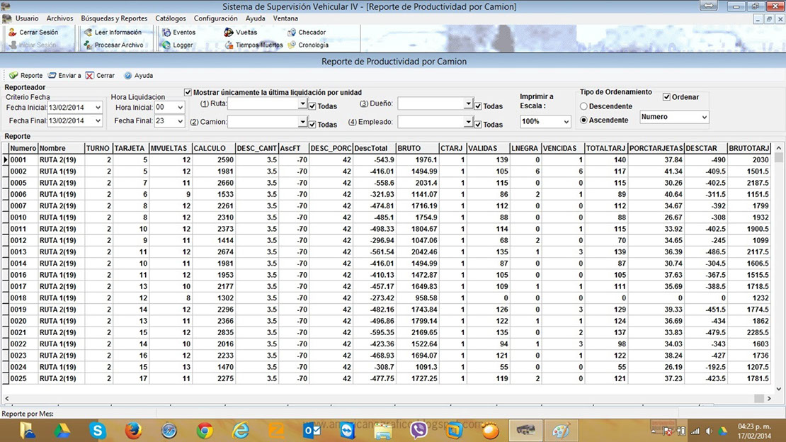 - Consulta de estadística histórica de la productividad de las unidades.