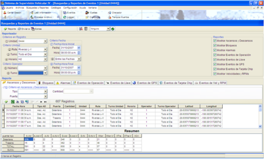 Se colocan equipos electrónicos especializado en los autobuses, y se integra a una red de comunicación vía celular o satélite. Por medio del procesamiento de toda la información se logra obtener la siguiente información.