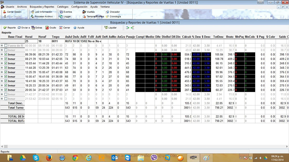 - Aforo diario, por vuelta, por turno, por tipo de usuario (si se cuenta con usuarios credencializados)